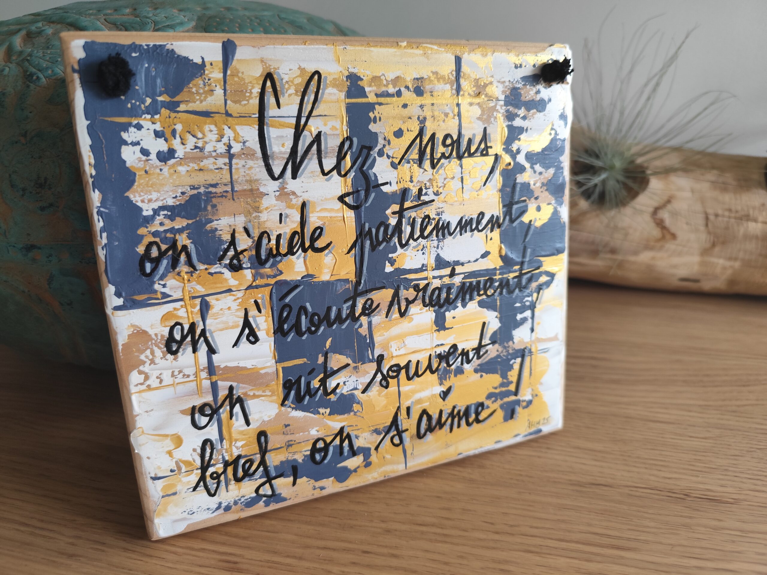 🏡 Plaque décorative “Chez nous…” – citation maison & amour (pièce unique)